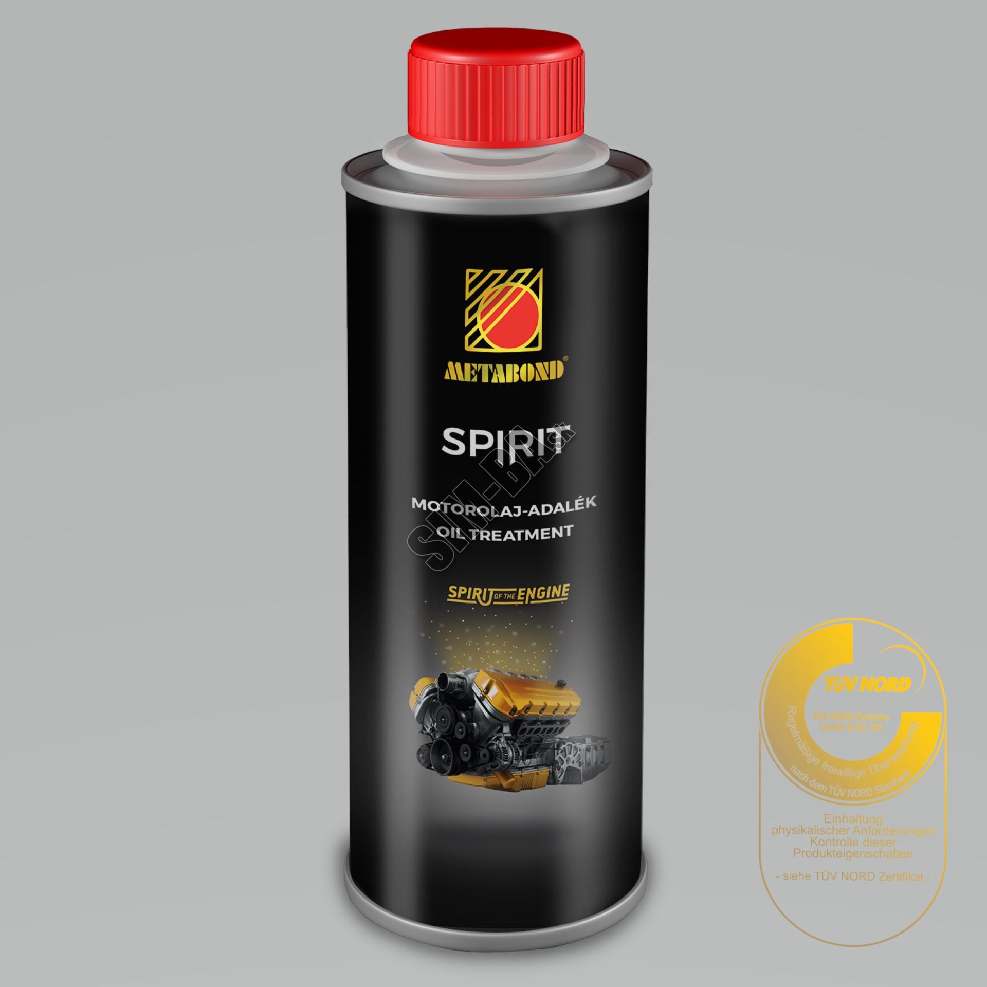 METABOND SPIRIT je vývojom roka 2018. Je najmodernejším zušľachťovačom kovových povrchov s nanotechnológiou bez popola pre osobné vozidlá s významným účinkom, ktorý znižuje trenie a ešte viac zlepšuje schopnosťou mazania. Odporúča sa do benzínových, dieselových a plynových "štart-stop" motorov osobných vozidiel, ktoré boli vyvinuté po roku 2010, zmiešaný s olejom predpísanou kvalitou. Je použiteľný pri vozidlách vybavených s filtrom pevných častíc a katalyzátorom.