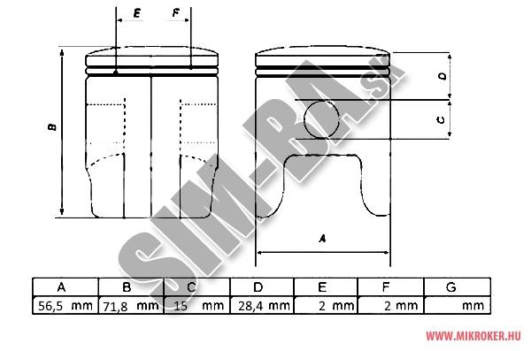 /1 ks piest, 2 ks piestný krúžok, 1 ks piestný čap, 2 ks poistný krúžok/